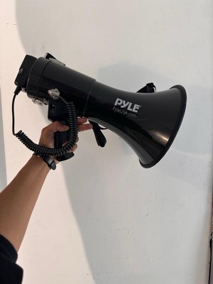 - POWERFUL VOICE AMPLIFIER: Talk through the coiled-cord handheld microphone and be heard loud & clear with the Pyle 50W Bullhorn Megaphone Speaker. With a sound projection range of over 1,200 yards and a sound level of 105 decibels, you can effectively get everyone's attention!
