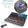 The Pyle PMXU67BT is a professional 6-channel Bluetooth studio mixer designed for DJs and studio applications. This versatile mixer combines traditional sound card functionality with advanced mixing capabilities, making it perfect for both live performances and recording sessions. Featuring built-in Bluetooth for wireless music streaming, a 16 Bit DSP processor for analog effects, and a direct-to-computer connection for easy sound recording, this mixer offers everything you need to create high-quality audio. The 7-band EQ, rotary adjustment knobs, and LED indicator lights provide precise control over your sound, while the USB flash drive reader allows for convenient playback of MP3 digital audio files. With its robust design and comprehensive feature set, the PMXU67BT is the ideal choice for professional and aspiring DJs alike.