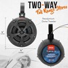 The Pyle Waterproof Off-Road Bluetooth Speaker System (PLUTV44BTR) is perfect for enhancing your outdoor adventures with high-powered audio and vibrant RGB lighting. Designed for use with ATVs, UTVs, and other off-road vehicles, these speakers feature marine-grade waterproof construction and weather-resistant housing. The system offers Bluetooth wireless music streaming, allowing you to easily connect your favorite devices. With a built-in digital sound processing amplifier, this system provides full-range stereo sound and impressive bass response. The rugged universal mount bracket makes installation easy on roll-bars or roll-cages, ensuring a secure fit for any vehicle.