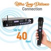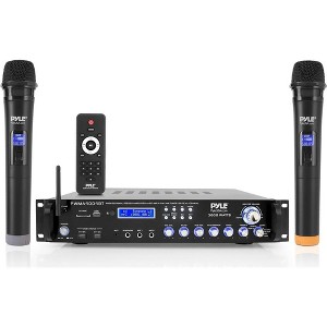 - RACK MOUNT: High powered home theater pro audio receiver features a universal rack mount design w/ built-in cooling fan & integrated overload/short circuitry protection. Includes 2 UHF wireless handheld microphones, mounting brackets & remote control