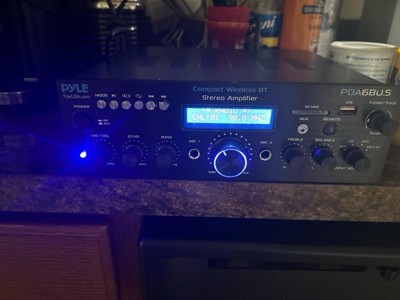 Pyle Compact Bluetooth Stereo Amplifier - Desktop Audio Power Amp Receiver with FM Radio, MP3/USB/SD Readers, Digital LCD Display, Microphone Input