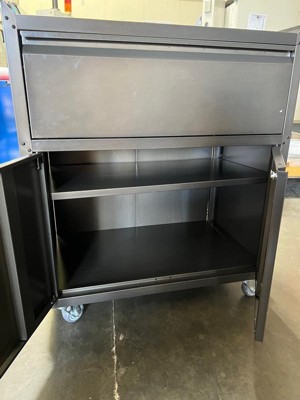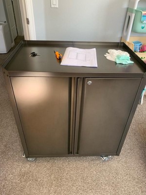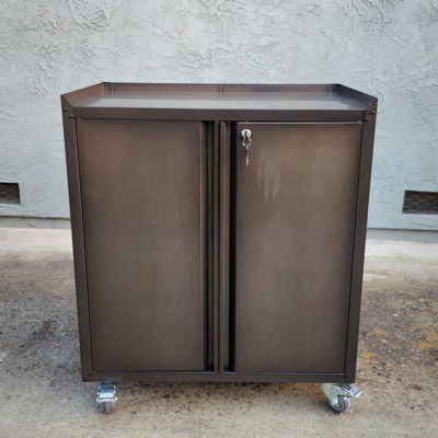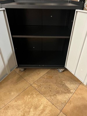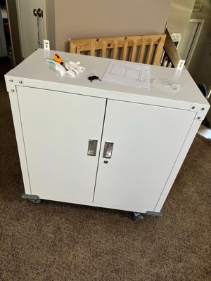 [This review was collected as part of a promotion.] This storage cabinet is great. Easy to assemble. It fits perfectly in the bottom half of my closet. Wheels move smoothly, and steel thickness appears it can support a medium duty load of weight. Very spacious, enough to fill both shelves with at least 60 full-size bottles of liquor.