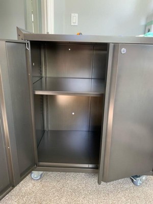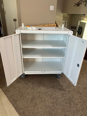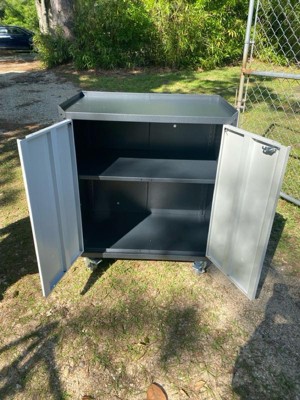 [This review was collected as part of a promotion.] Assembly was quick, taking my husband less than an hour. The adjustable shelves make it easy to customize for our storage needs. It's versatile, perfect for storing tools, supplies, and more. With lockable wheels and doors, our items are safe and easy to move. Highly recommended for simple, secure storage!