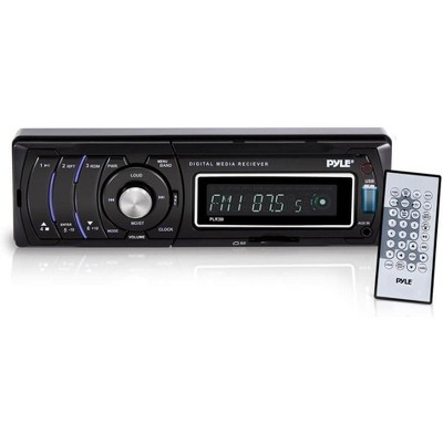 Upgrade your car's audio experience with the Pyle Single DIN Vehicle Receiver Headunit, featuring AM/FM-MPX radio and versatile media playback options. This in-dash receiver is equipped with a detachable faceplate for added security, along with USB and SD/MMC card slots that support MP3 and WMA files. With 30 preset stations, front auxiliary input, and a powerful 4 x 40 Watts output, this unit provides all the features you need for a high-quality listening experience. The red LCD display with ID3 Tag readout and red button illumination add a sleek, modern touch to your dashboard. A full-function remote control and RCA line out jack enhance the convenience and connectivity of this affordable, feature-packed receiver.