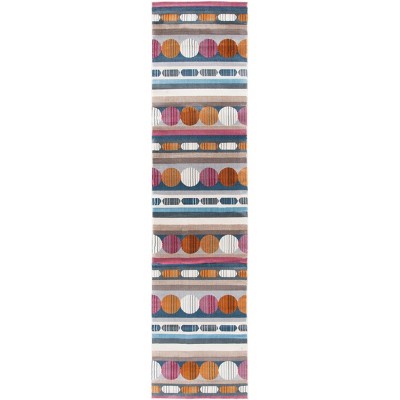 Transform your hallway with this contemporary runner rug, thoughtfully crafted to bring elegance and comfort to your space. Measuring 2 feet 2 inches by 9 feet, its sleek design and refined grey and ivory hues complement any decor style. The power loomed technique ensures intricate detailing while maintaining a smooth finish. Made in Egypt, this rug features a blend of polypropylene, jute, latex, and polyester, offering a soft touch underfoot. With a low pile height of 3/8 inch, it is perfect for high traffic areas, allowing for easy movement and maintenance. Elevate your home with this stylish and functional piece that seamlessly blends into your living space.