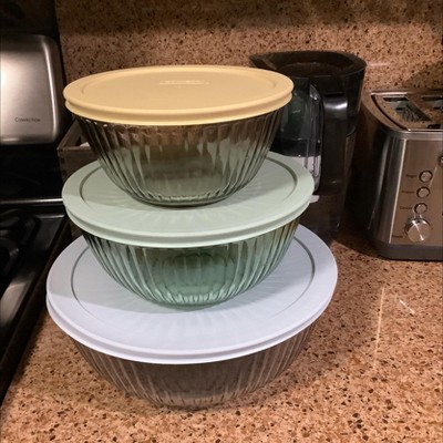 Pyrex® Sculpted Tinted 6pc Lidded Mixing Bowl Set: Glass Bowls with Lids, Dishwasher-Safe, Multicolored