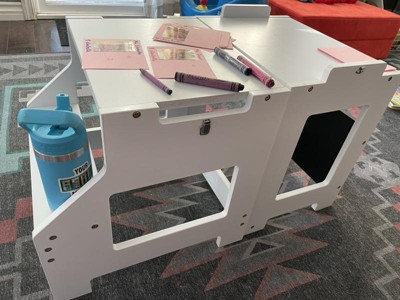 Qaba 2-in-1 Kids Kitchen Step Stool, Detachable Toddler Table and Chair Set Toddler Step Stool with Safety Rail Chalkboard for Kitchen, Gray