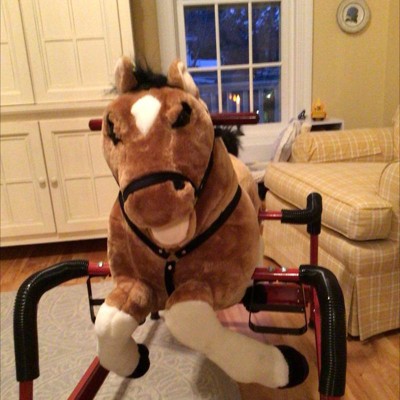 This horse is not worth a dime the wooden handle bars unscrewed more than once and one time my grandson fell off the horse because of it and hit his side on the bottom railing scratching and bruising his little side and the black piece that holds the springs in has came out three times already and this horse is dangerous for your children! The way the bottom railing is on the horse when your children fall down have no place to go but hit the bottom railing that can easily break a rib.