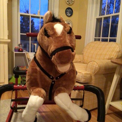 The rocking horse functioned as described, but the appearance was not as pictured. The legs are turned out at an odd angle and the eyes and ears are crooked and sewn in poorly.