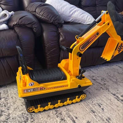 Qaba NO POWER Ride On Excavator Toy Tractors Digger Movable Scooter Walker Pretend Play Toddler Construction Truck Basket Storage Yellow