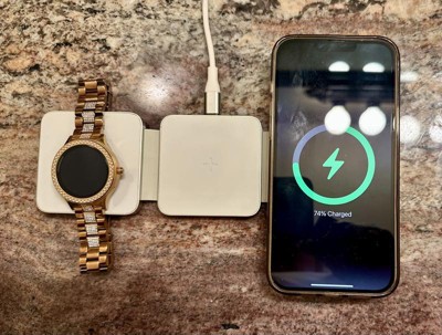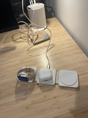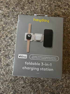 A: Hi, thanks for reaching out about the Qi2 Wireless 3-in-1 Folding Charging Pad - Stone White - heyday™ White The Qi2 Wireless 3-in-1 Folding Charging Pad - Stone White - heyday™ is designed to charge one smartphone wirelessly, along with a pair of earbuds and a smartwatch, for a total of three devices simultaneously. If you have any additional questions, we welcome you to contact MyTGTtech at 833-848-8324 every day between 7 am and 11 pm CST.