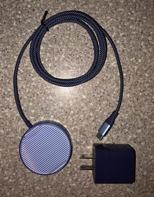 The Qi2 Wireless Charging Pad - Peri Blue from heyday™ Blue offers a convenient charging solution with its 15-watt output. It features a 6-foot USB-C cord, providing ample reach for various setups. Compatible with devices that support wireless charging, this pad ensures efficient power delivery with a 5-volt output. The compact design makes it easy to integrate into any space, while the modern look adds a subtle touch of style.