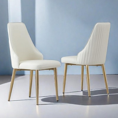 QingMoon Leather Dining Chairs Set of 6, Shell Shape Upholstered Kitchen Chairs with Metal Legs and Adjustable Feet for Living Room White