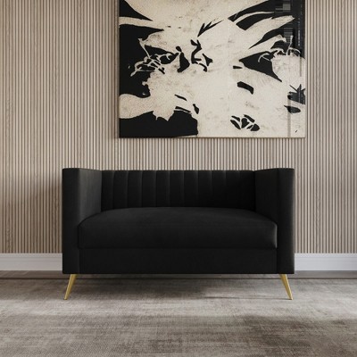 QingMoon Loveseat Sofa, Modern Soft 2 Seater Couch with Side Storage Pocket and Solid Wood Frame, Corduroy Sofa for Living Room, Apartment
