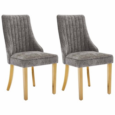 QingMoon Wood Dining Chairs Set of 2, Fabric Upholstered Kitchen Chairs, Modern Accent Chair with Ergonomic Backrest for Dining Room