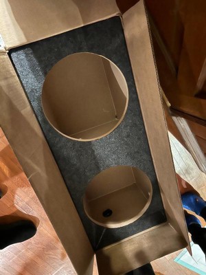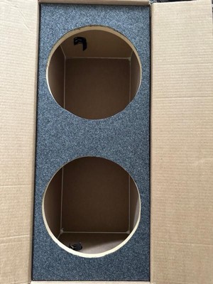 [This review was collected as part of a promotion.] This is a huge and very heavy duty sub woofer box, I knocked it down a star because there seems to be some water/glue stains on the inside which in all reality is not a huge deal but I am so excited to put these in the vehicle!! Now just to get some speakers!