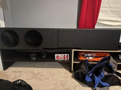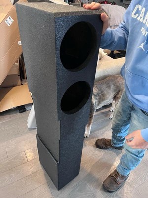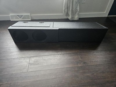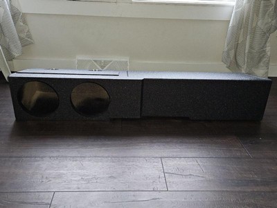 [This review was collected as part of a promotion.] This is the sturdiest subwoofer box we have ever had. My husband has a Chevrolet truck and is full of speakers but this one just won’t work for him as his subwoofers do not fit in this. He needs 4 holes but he also needs larger holes. We expected them to fit but they do not. We would love to give this five stars but because of the fit we can not. Again, this is the best made speaker box we’ve ever seen. There are also a few scratches on the side where the speakers are but it would not even hurt the sound of the subwoofers.