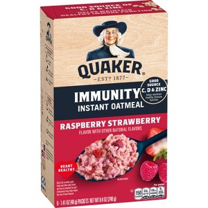 Some mornings are just meant for a bowl of oats. Comforting and great with your favorite toppings, these oats are all you could want. Quaker Instant Oatmeal is quick and tasty. It's a perfect on-the-go breakfast option! Quaker Instant Oatmeal is a great way to help start your morning. Quaker Immunity Instant Oatmeal has a delicious blend of flavorful real fruit pieces and no artificial flavors or colors from artificial sources. It also helps maintain a healthy immune function with a good source of vitamin C, D, and Zinc.