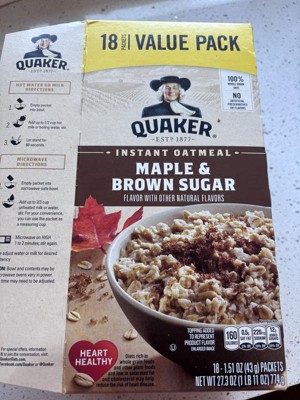 - Includes 18 (1.51oz) packets of Quaker Instant Oatmeal, Maple & Brown Sugar flavor
