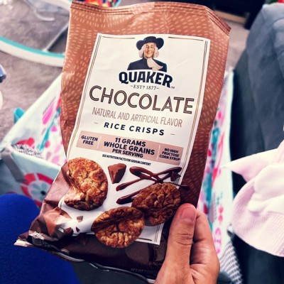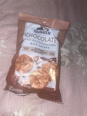 - Quaker Chocolate Mini Rice Cakes: Chocoholics will love this low fat snack everyone can feel good about. It starts with rice crisp crunchiness and ends with decadent chocolatey yumminess. Snacking bliss. Popped. Never fried.