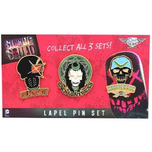 - Each Suicide Squad Lapel Pin set includes three richly enameled designs that are based on artwork straight from DC Comics' design vault.