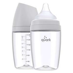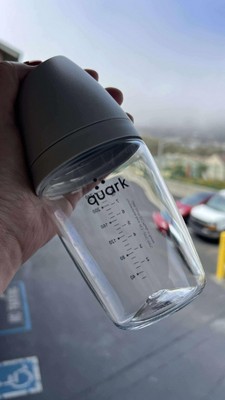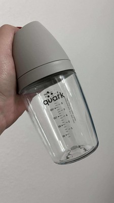(This review was collected as part of a promotion.) i really do wish these bottles were around last summer. Wanting something that would help the bottle/breast transition and have decent anti-colic capability, we went all in on the Comotomo bottles. While it ‘worked', the compromises we had to make were many and sizeable. So this review is written as a comparison to the Comotomo's:_x000D_ 1. While the Comotomo's look cool, the fact that the markings are not colored makes it *impossible* to read in anything but a well lit room. This Quark bottle, while still looking good, has very clear (and accurate) markings that are CLEARLY legible_x000D_ 2. To get the Comotomo's to not leak, you need to close the top on TIGHT. Problem is, unscrewing it takes monumental effort. My wife can't do it most times! With this Quark bottle, we have not had any leaks nor do we need to get a mini workout opening it_x000D_ 3. Perhaps the biggest issue we have with the Comotomo's is that they form a cloudy layer when not used for a few days. It's disgusting given how it looks/the odor. The company says its OK but yeait's not. Once again, with the Quark, it cleans super easy and looks pristine_x000D_ Obviously transitioning to the Quark after months of Comotomo use hasn't been easy, but that's not the bottles fault. This set is a solid, high quality buy for any new parent who plans on breast/bottle co-feeding.
