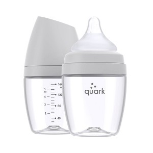 (This review was collected as part of a promotion.) i really do wish these bottles were around last summer. Wanting something that would help the bottle/breast transition and have decent anti-colic capability, we went all in on the Comotomo bottles. While it ‘worked', the compromises we had to make were many and sizeable. So this review is written as a comparison to the Comotomo's:_x000D_ 1. While the Comotomo's look cool, the fact that the markings are not colored makes it *impossible* to read in anything but a well lit room. This Quark bottle, while still looking good, has very clear (and accurate) markings that are CLEARLY legible_x000D_ 2. To get the Comotomo's to not leak, you need to close the top on TIGHT. Problem is, unscrewing it takes monumental effort. My wife can't do it most times! With this Quark bottle, we have not had any leaks nor do we need to get a mini workout opening it_x000D_ 3. Perhaps the biggest issue we have with the Comotomo's is that they form a cloudy layer when not used for a few days. It's disgusting given how it looks/the odor. The company says its OK but yeait's not. Once again, with the Quark, it cleans super easy and looks pristine_x000D_ Obviously transitioning to the Quark after months of Comotomo use hasn't been easy, but that's not the bottles fault. This set is a solid, high quality buy for any new parent who plans on breast/bottle co-feeding.