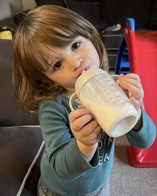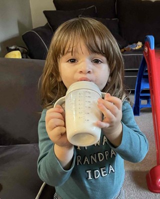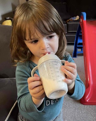 [This review was collected as part of a promotion.] This sippy cup is perfect for parents who are looking to transition their child from bottles to sippy cups. It comes with handles on each side which makes for easy holding for your toddler. It also has a cap so it can easily be packed without worrying that it will spill. I also love how it has ounce measurements down the backside. It is dishwasher safe which makes for easy clean up! I received an incentive to write this review.