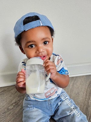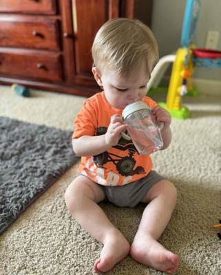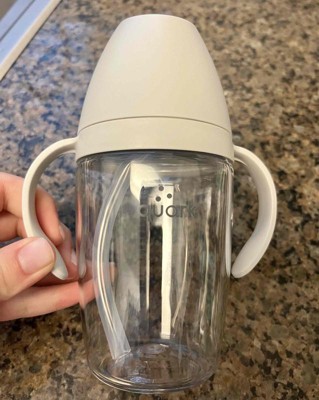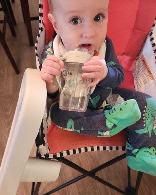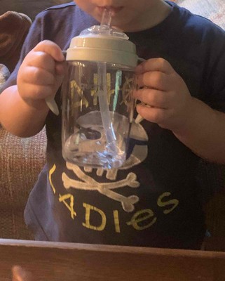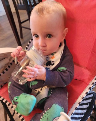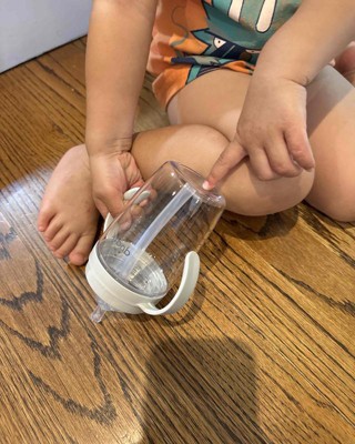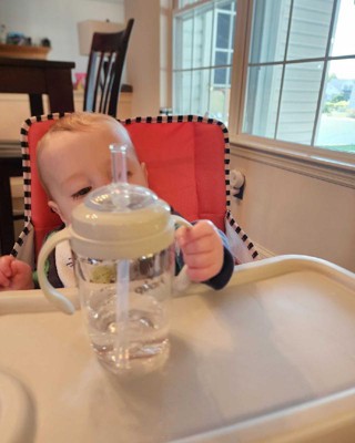 Purchased as handles interchangeable with bottles so allowed for baby to learn to hold bottles by himself. The straw was very easy for 7 month old to learn to use and he happily would reach on own to get water on his tray while eating solids. Unfortunately, his hands were slippery and he couldn’t grab bottle well and knocked it to floor and handle broke. I so wanted to love these but not sturdy enough for baby who will drop things.