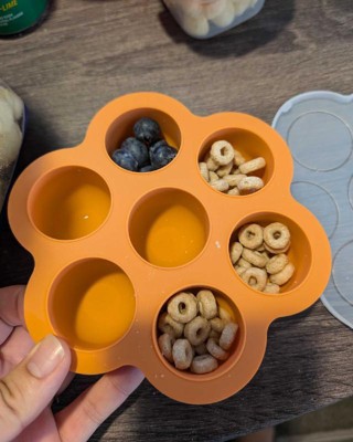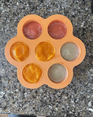 [This review was collected as part of a promotion.] Love this silicone product. There are 7 individual containers, which hold a pretty good amount of food. Perfect portion size for your little one. The silicone is super flexible, including the top. I feared the top wouldn't close effectively, but no issues whatsoever so far. The container is a muted orange, which makes it easy to spot in my freezer or drawer. Great gift idea or gift to yourself! Highly recommend.