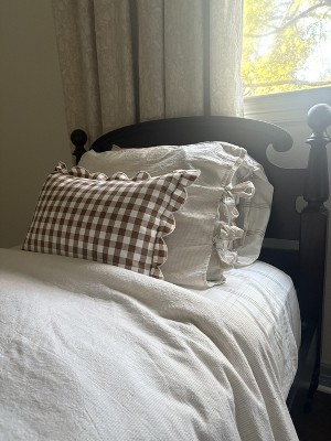 These sheets look beautiful and feel soft right out of the package. The plaid pattern is so pretty, and the scalloped edges make them extra special