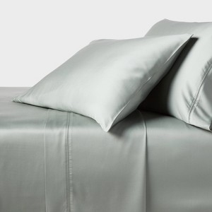 Give your bedroom a new look and feel with this 320 Thread Count TENCEL® Lyocell Sheet Set from Threshold™. The soft and breathable lyocell satin fabric helps you get a comfortable night's sleep, while the fully elasticized fitted sheet lends a secure fit around an 18in mattress. Best of all, you can simply toss this set in the washing machine for easy cleaning.