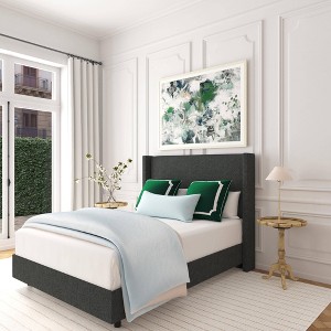 Create a chic, modern look for your bedroom with this Austin Wingback Bed from Threshold™. Founded on a pine frame for stability, this bed is upholstered in a tweed fabric with a wingback headboard that gives your space a stylish, luxurious look. The upholstered headboard provides the perfect back support to enjoy a good read or watch your favorite sitcoms, while the simple design blends effortlessly with any decor style and color palettes. Simply add a comfortable mattress, box spring and favorite bedding set to enhance the look of your restful retreat.