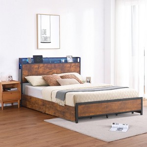 Queen Bed Frame, 4 Drawers and Storage Headboard, Metal Platform Bed, Easy Assembly, No Box Spring Needed
