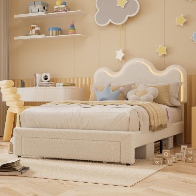 Transform your child’s bedroom into a magical retreat with our Princess Boucle Platform Bed, available in Full and Queen sizes. Featuring a multifunctional RGB LED headboard, control over 16 million colors, 20+ preset effects, and music-sync mode for a vibrant, immersive ambiance. The chic boucle upholstered headboard combines style and plush comfort, adjustable for various mattress sizes. Thoughtful storage drawers keep toys, blankets, and essentials organized, while sturdy wood slats and metal supports hold up to 1000 lbs—no box spring needed. Silent-glide design ensures a noise-free, cozy sleep environment. Easy, 35-minute assembly with included tools and instructions makes setup simple and fun. Perfect for bedrooms, playrooms, or sleepovers, this bed blends functionality, elegance, and playful charm for your little princess.