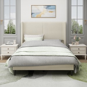 This high-back soft bed radiates luxurious elegance, with its upholstered headboard adding sophistication that blends with modern or classic bedroom decor. Its robust solid wood legs complement the look, infusing subtle natural elegance. Beyond appearance, the bed offers user-friendly functions: two size options fit compact to spacious bedrooms, and two stylish colors let you personalize your space. It prioritizes sleep comfort, turning your bedroom into a cozy retreat for restful nights. Durability and comfort come from premium materials: high-quality Boucle Fabric delivers a soft surface for a cozy sleep experience. Sturdy solid wood legs withstand daily use, providing stable mattress support year after year. In summary, this bed fuses style, functionality and quality -- ideal for upgrading sleep spaces.