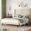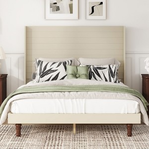 Queen/King Size Platform Bed with Comfortable High Headboard Bed, White/Beige-ModernLuxe