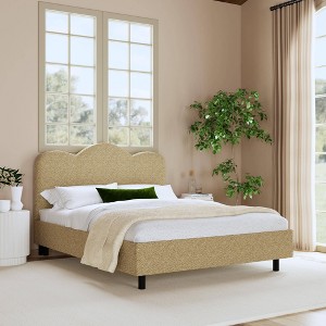 Add a new look to your sleeping area with this Lizzie Platform Bed in Boucle from Threshold™. This low-profile platform bed features a scalloped headboard with a lightly padded design. Constructed of pinewood, it's upholstered in solid-colored boucle-textured fabric for easy coordination with any decor. Coordinate with a mattress and your choice of bedding to bring style and comfort to your sleeping nook.