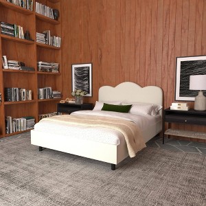 - Upholstered scalloped platform bed, designed for use without a box spring