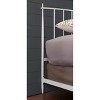 Give your bedroom a designer appeal with the contemporary style of the Lifestorey Nina queen bed. Constructed of metal, this fresh white finished queen size bed features a simple silhouette with a gently arched headboard detailed with metal rods. The low-profile footboard with cone inspired legs complete the clean line design creating the perfect complement to any bedroom décor.