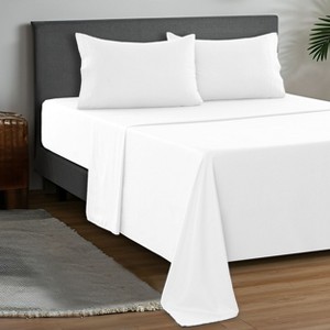 Solid 4 Piece Sheet Set Easy Care Ultra Soft Brushed Microfiber Bedding Deep Pocket Bed Sheets with Pillowcases  - Lux Decor Collection - 1 of 4