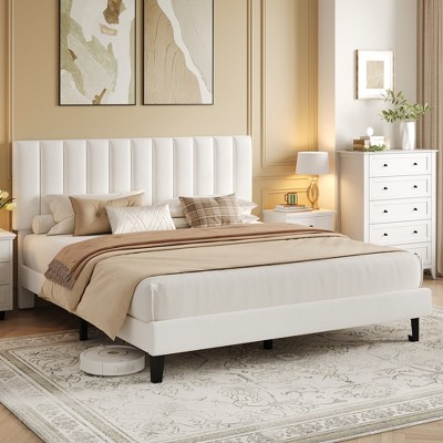 Queen Size Bed Frame, Velvet Upholstered Platform Bed with Adjustable Vertical Channel Tufted Headboard, No Box Spring Needed, Easy Assembly
