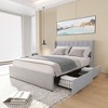- UPHOLSTERED BED WITH DRAWER: Four invisible under-bed storage drawers with wheels, still maintain a fashionable appearance, no more worry about crowded closets
