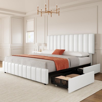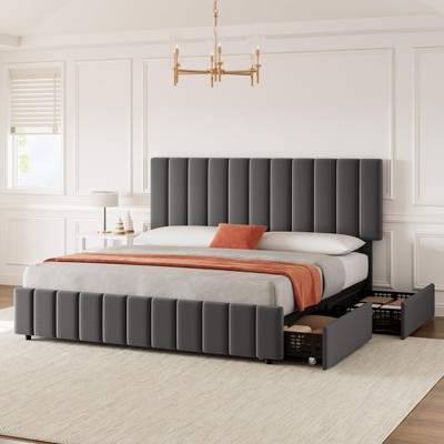 - 4 LARGER STORAGE DRAWERS: This platform bed frame comes equipped with 4 spacious storage drawers, perfect for keeping spare bedding, seasonal clothing, and other essentials organized. Each drawer includes a secure fixture to prevent sliding