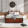 - Built-In Charging Station for Ultimate Convenience The storage headboard includes a charging station with 2 AC outlets, 1 USB port, and 1 Type-C port, allowing you to power your phone, tablet, laptop, or bedside lamp simultaneously. Say goodbye to messy cords and wall outlet struggles¡ªkeep your devices charged and organized right at your bedside.