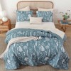 Queen Size Botanical Quilt Set, 3 Pieces, Lightweight Microfiber, Reversible, Floral Pattern, Blue