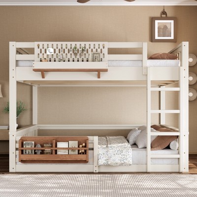 Queen Size Bunk Bed with Bookshelf, Ladder and Guardrails