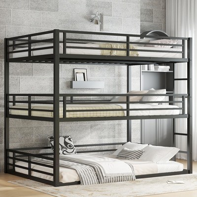 Queen Size Metal Loft Bed with Ladder and Storage Shelves