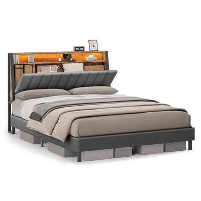 Queen Size Metal Platform Bed with Upholstery Storage function Headboard and Footboard