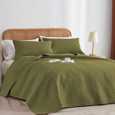 Queen Size Navy Blue Quilt Set, Classic Geometric Spots, Pre - Washed Microfiber, Soft Lightweight.